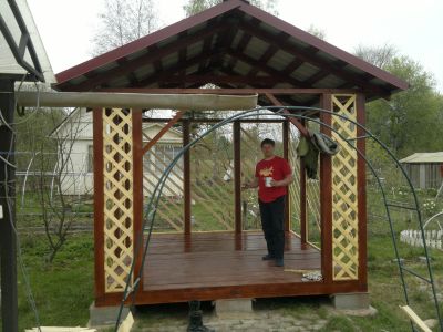 - сборка каркаса и деталей беседки