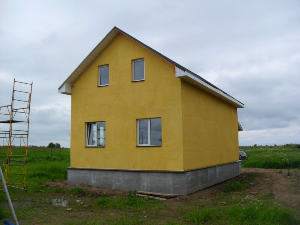 Строительство дома из пеноблоков в 1,5-этажа. Штукатурный фасад.Общая площадь 120кв.м.