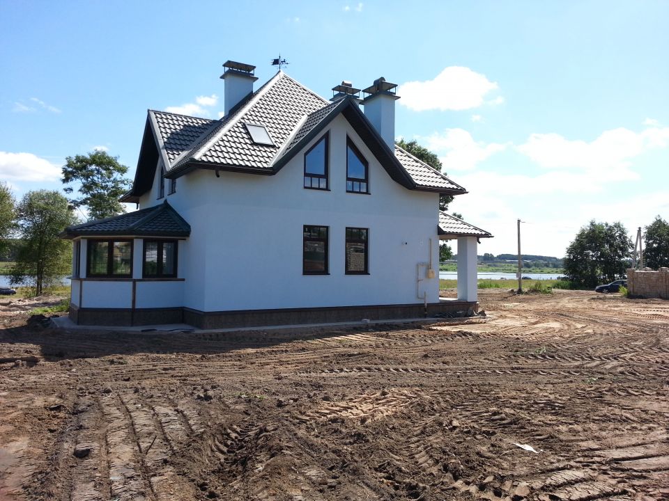 • Фундамент- плита по рабочему проекту. Газобетон. Штукатурка с эффектом утепления. Малоформатная металлочерепица.